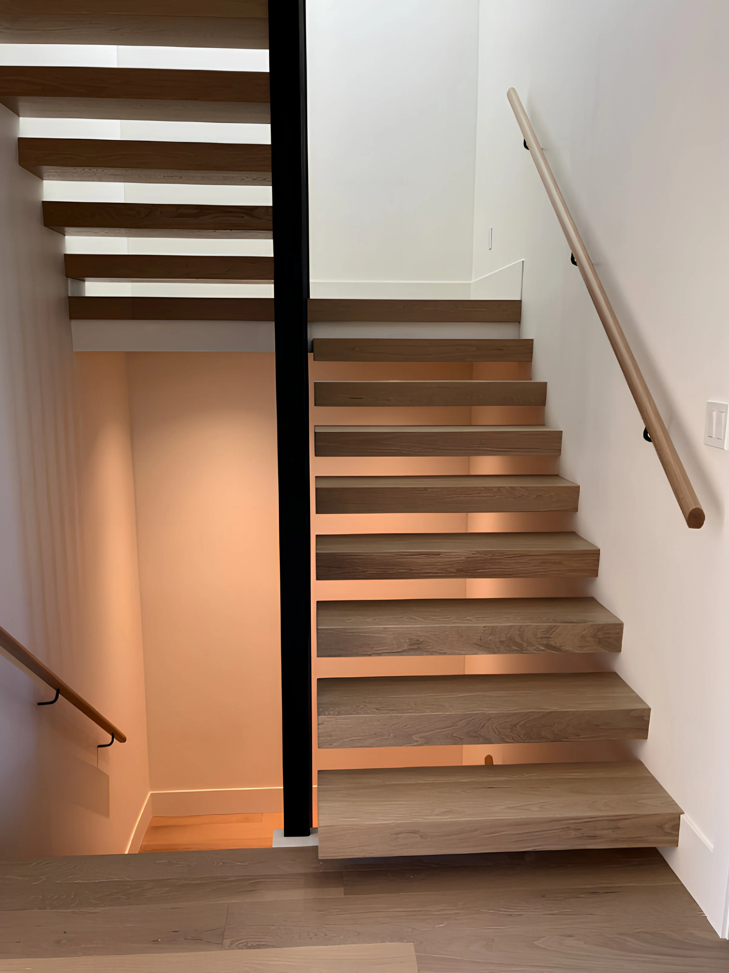 Built around a lateral steel stringer—the backbone of the design—each staircase is precision-engineered for durability and visual impact.