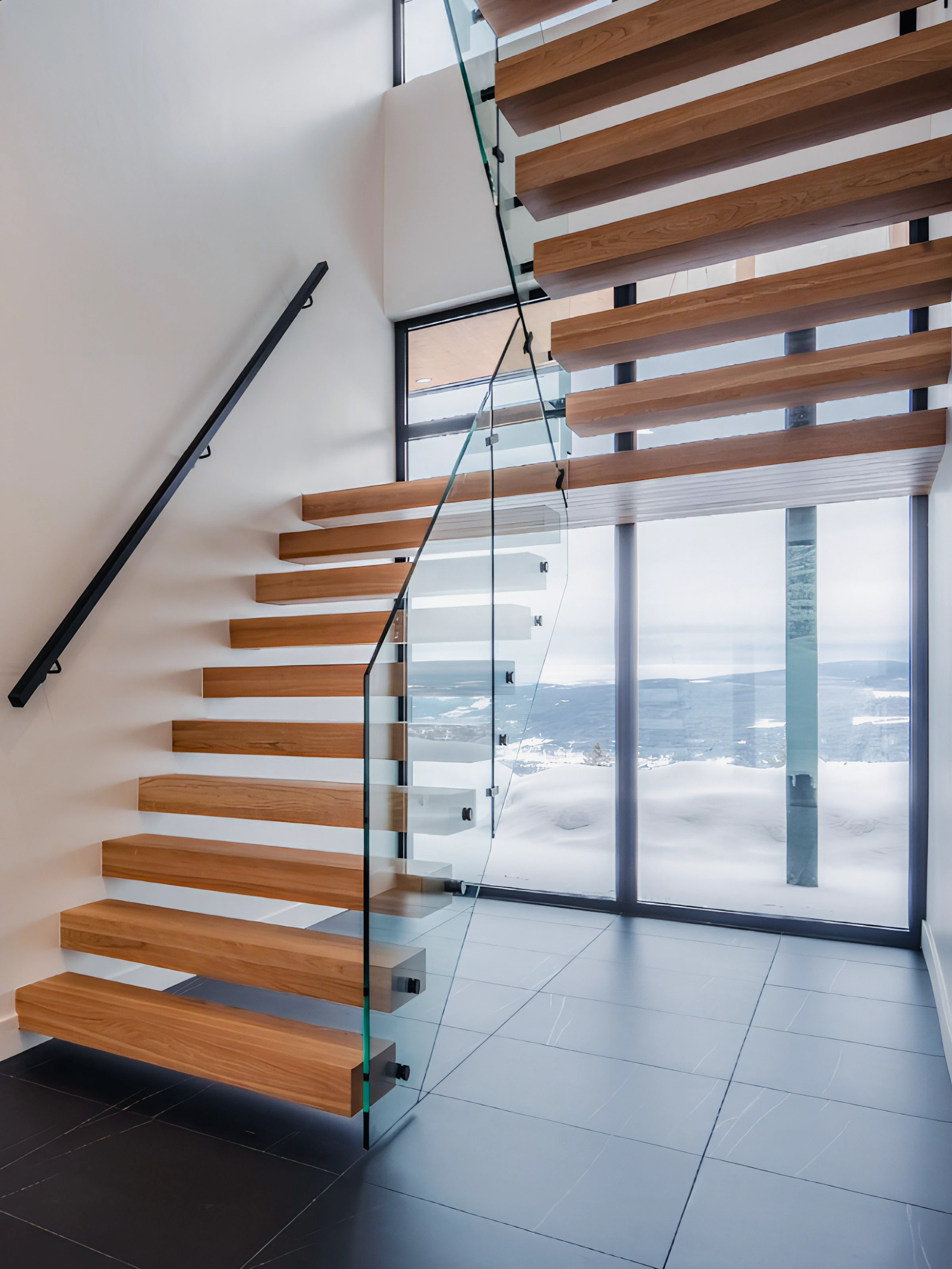 Treads appear to defy gravity, creating a striking focal point for open-concept spaces.