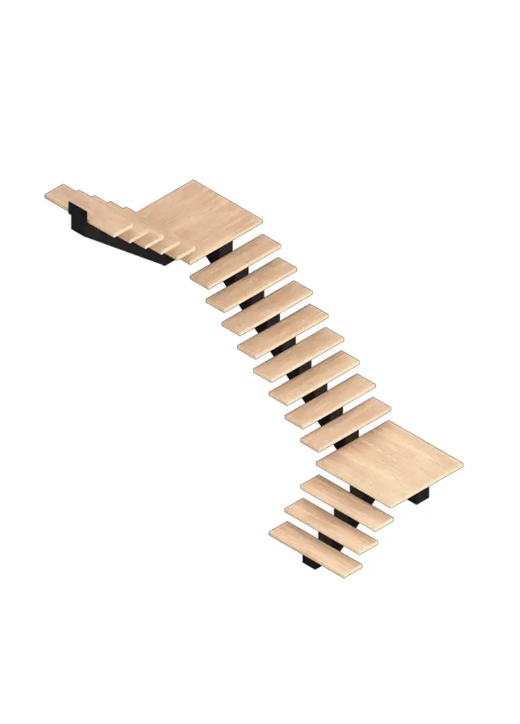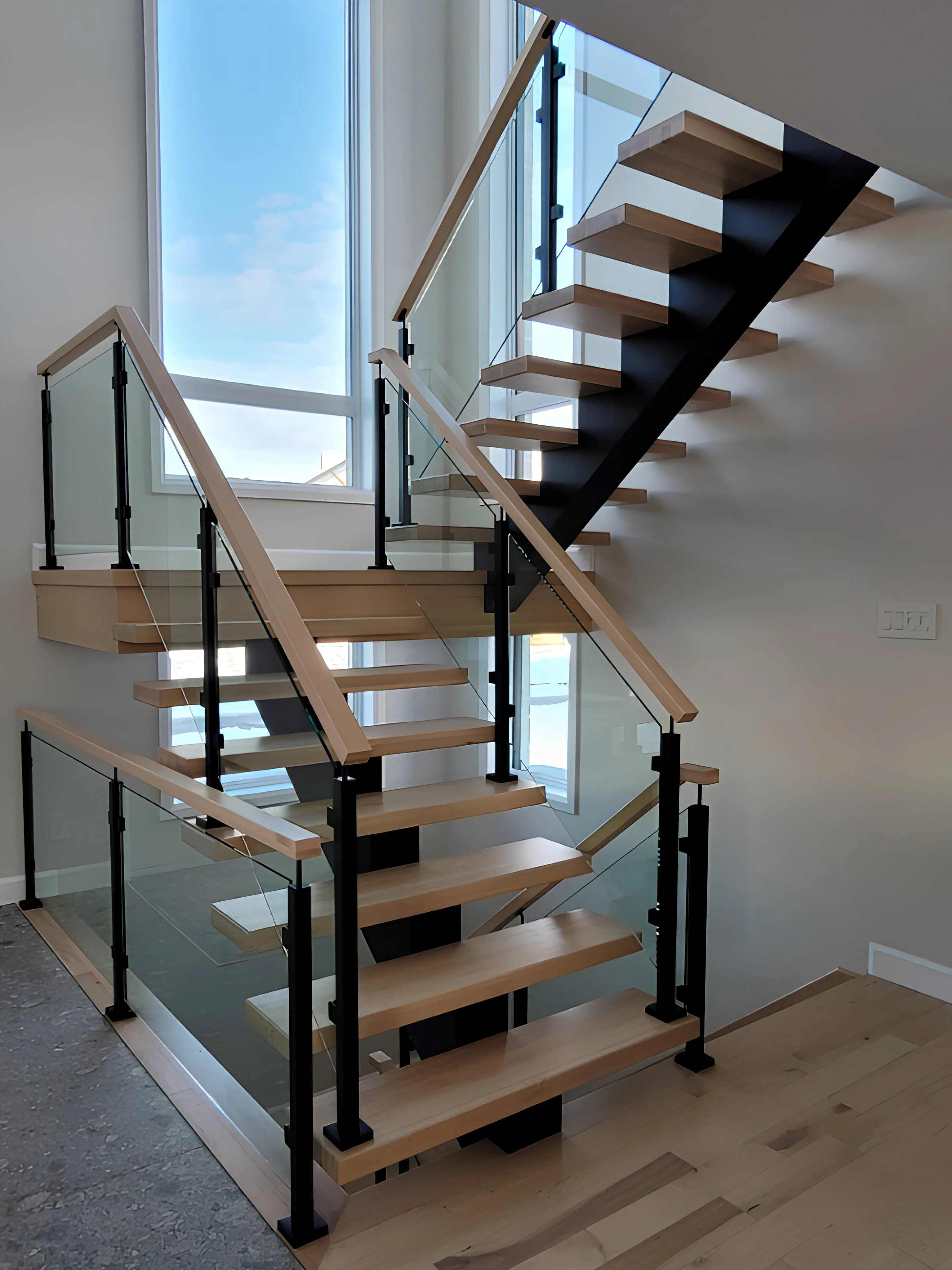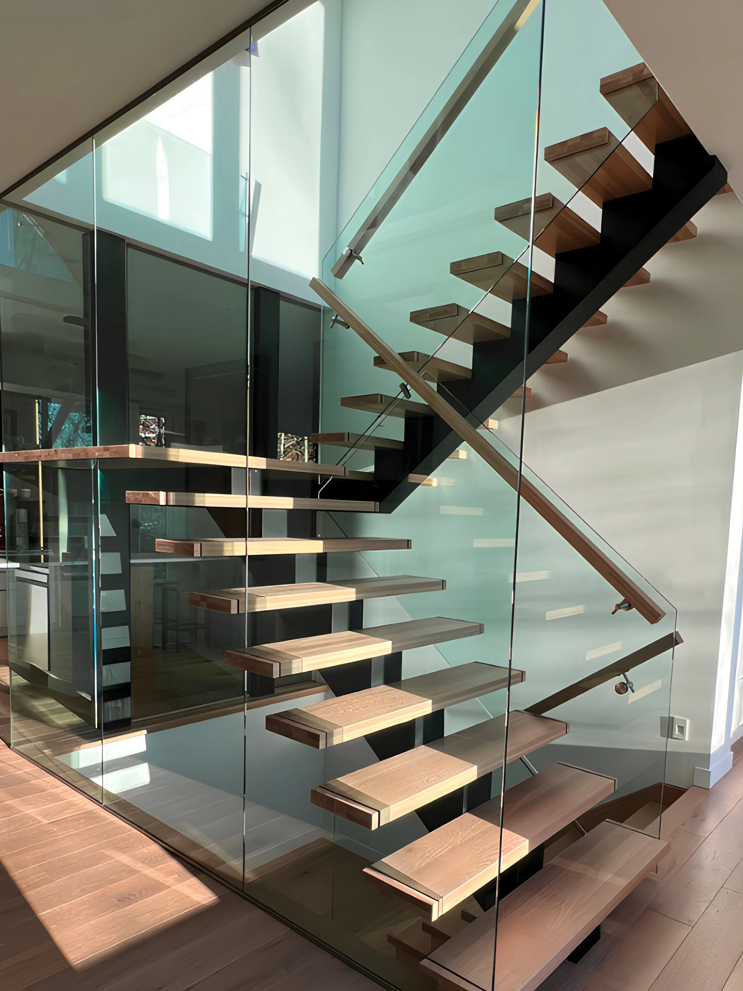 The Seattle stairs combine steel integrity with invisible craftsmanship. Built around a central spine, each step is engineered for silent impact.