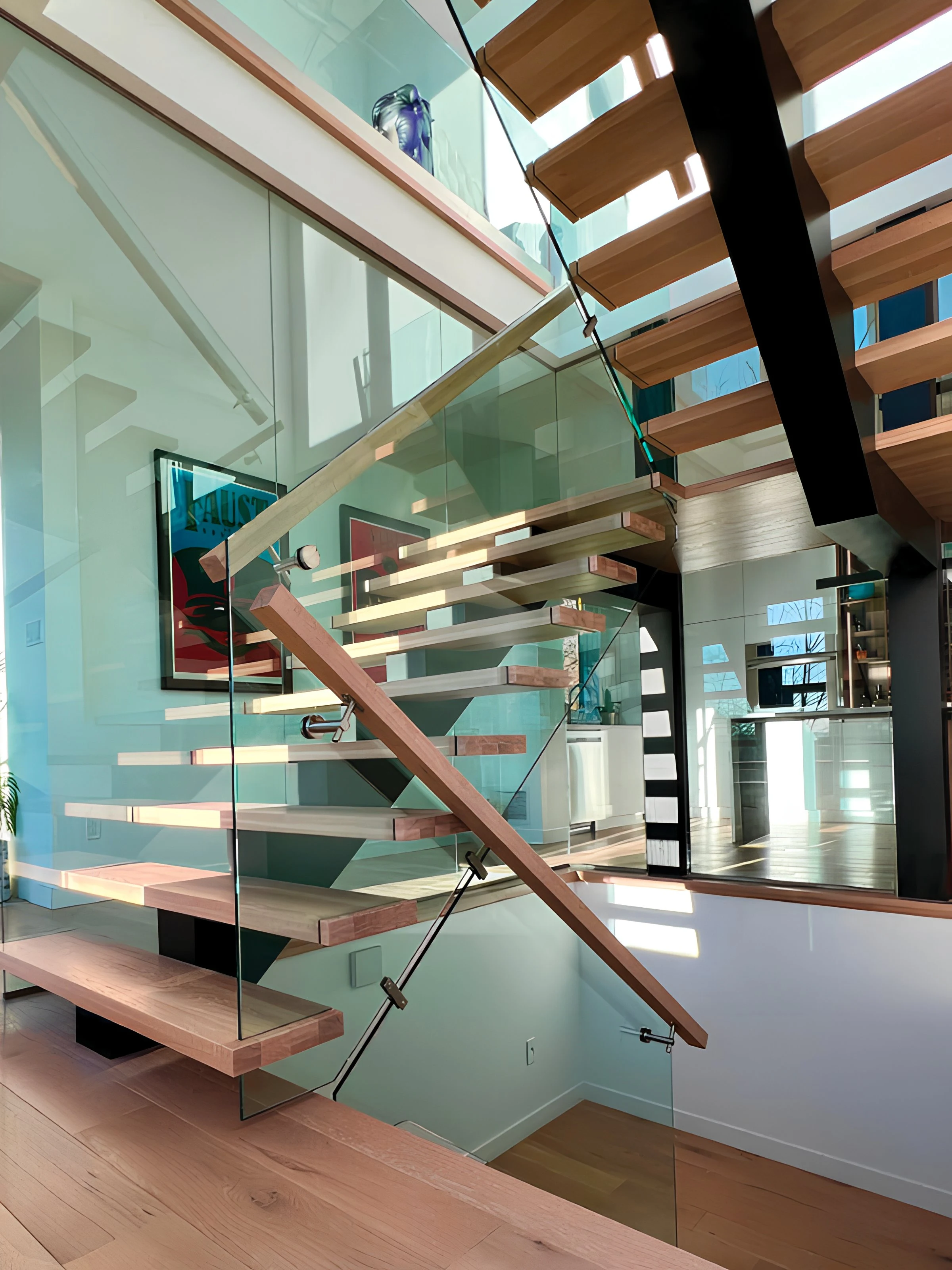 Treads appear to defy gravity, creating a striking focal point for open-concept spaces.