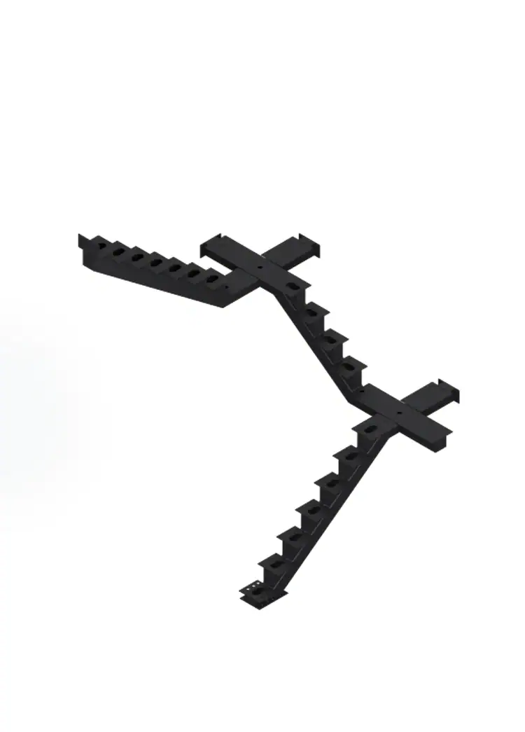 Precision-engineered central stringer. Industrial geometry, welded craftsmanship.