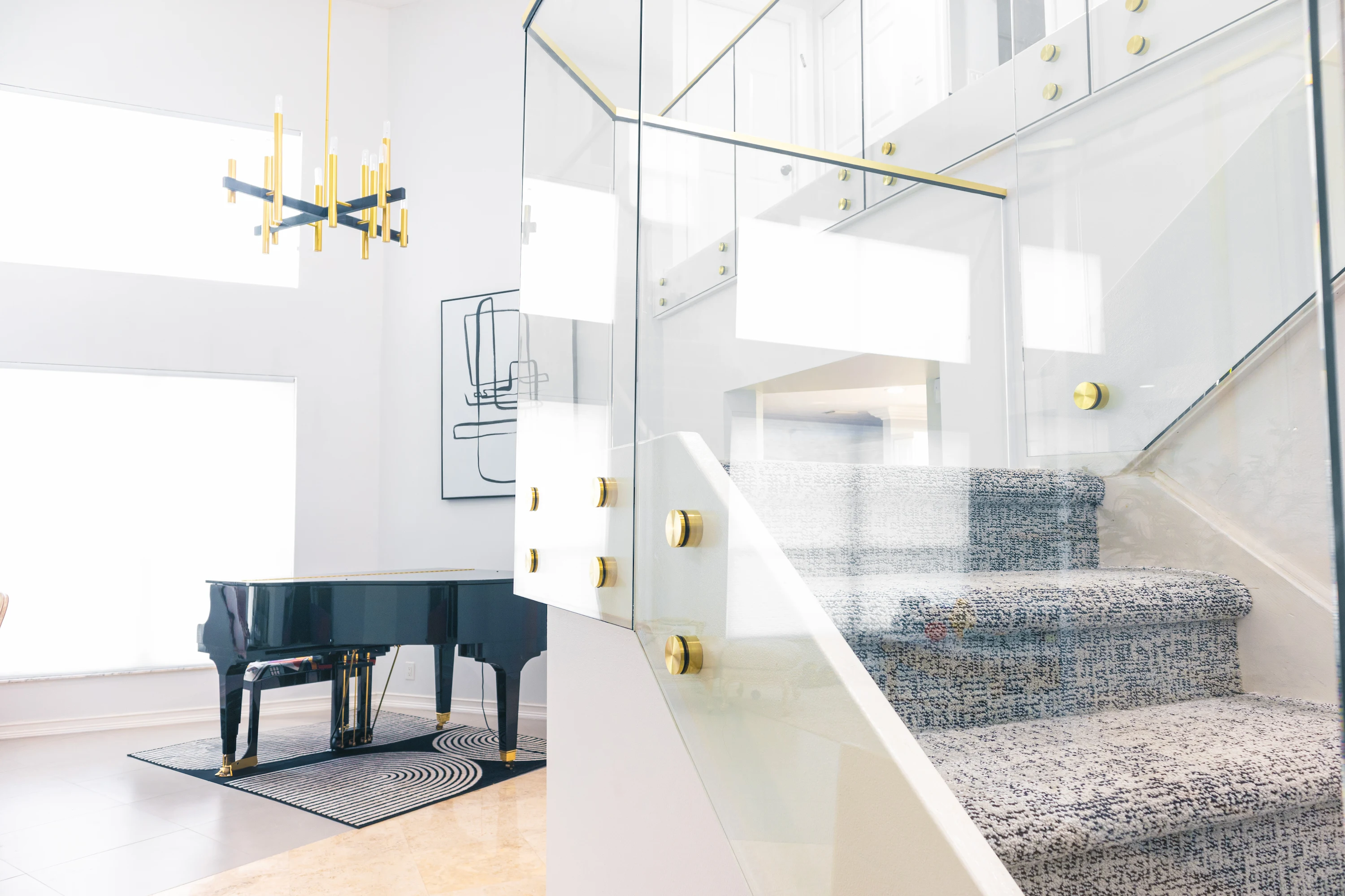 Glass railing for staircase.