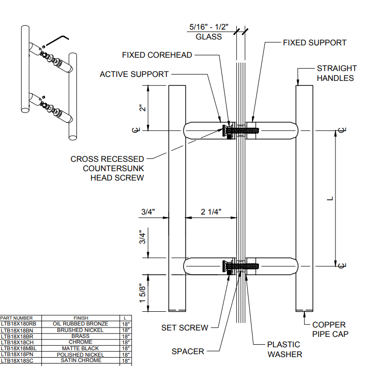 Ladder Style Towel Bars say “notice me” when mounted to a heavy frameless shower enclosure. The extra width when compared to typical shower door pull handles, makes for a unique appearance and contemporary design. Ladder Style Towel Bars are available Single-Sided, Back-to-Back and Towel Bar Pull Combination mounting using supplied through bolts on 5/16″, 3/8″ or 1/2″ (8, 10 or 12 mm) thick glass. Material diameter is 3/4″ (19 mm).