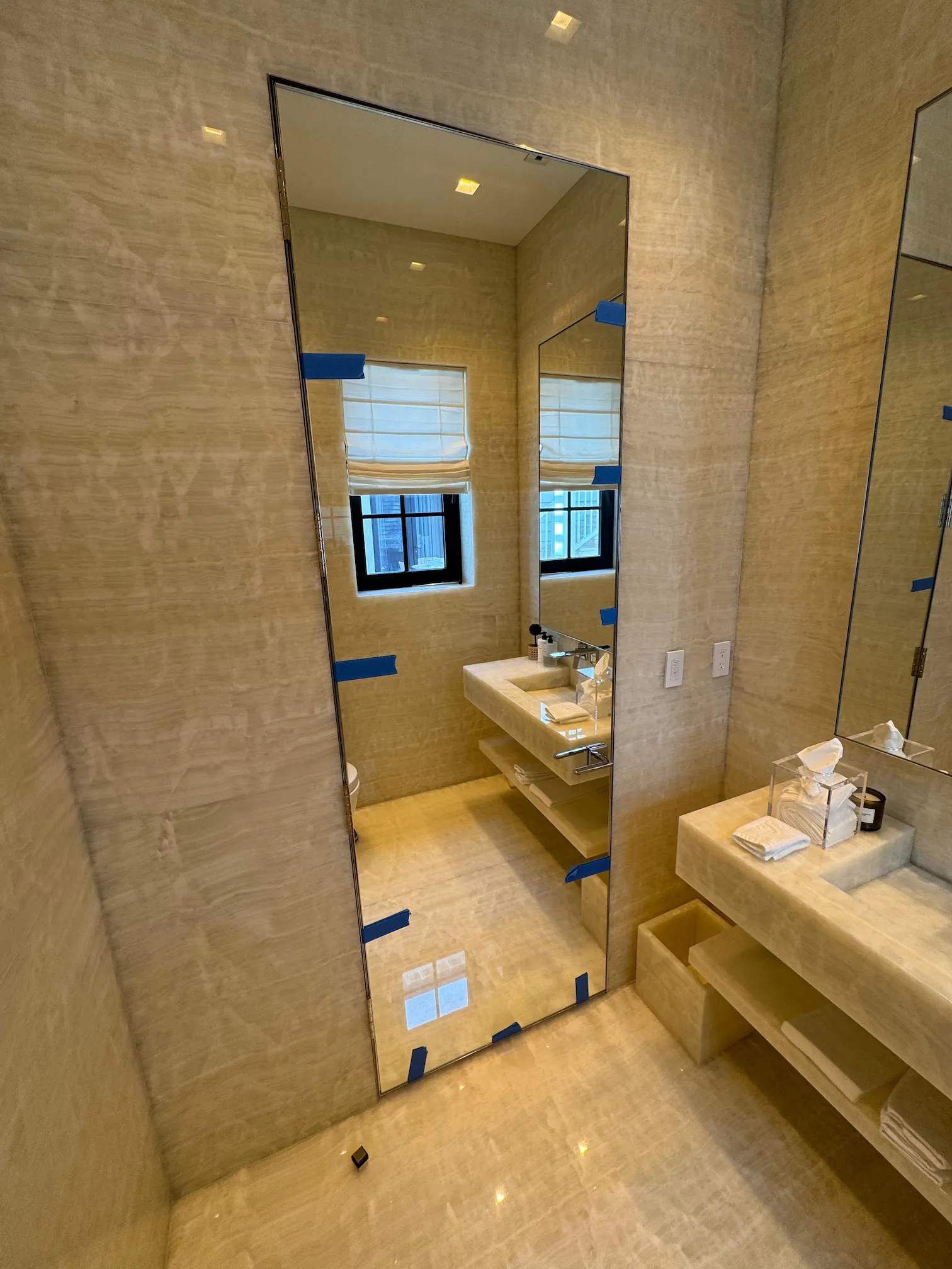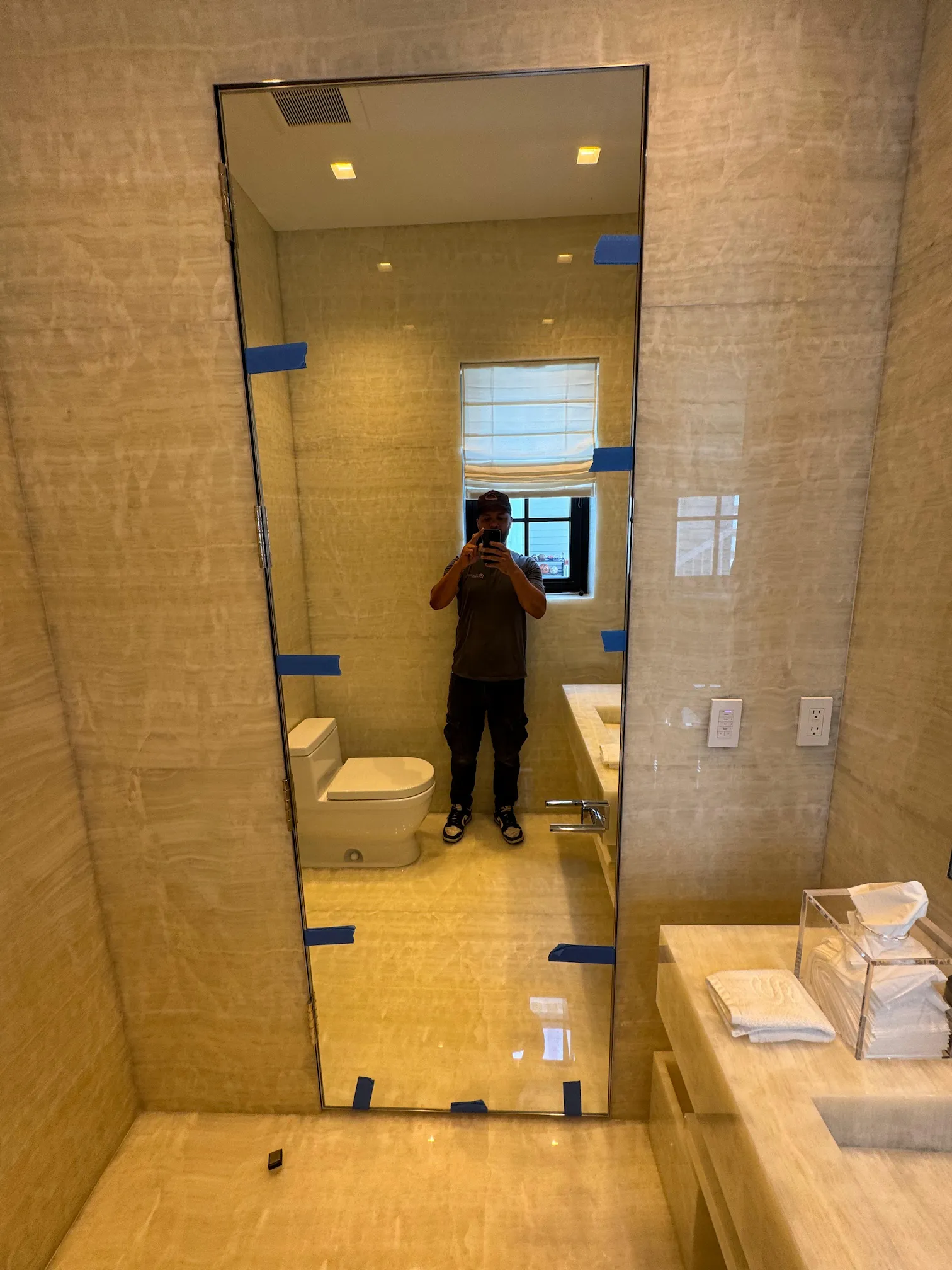This project in North Palm Beach, FL involved a precise on-site replacement of a first-grade mirror. The mirror was custom-cut to include a door handle cut-out, ensuring a perfect fit within the existing space and functionality.