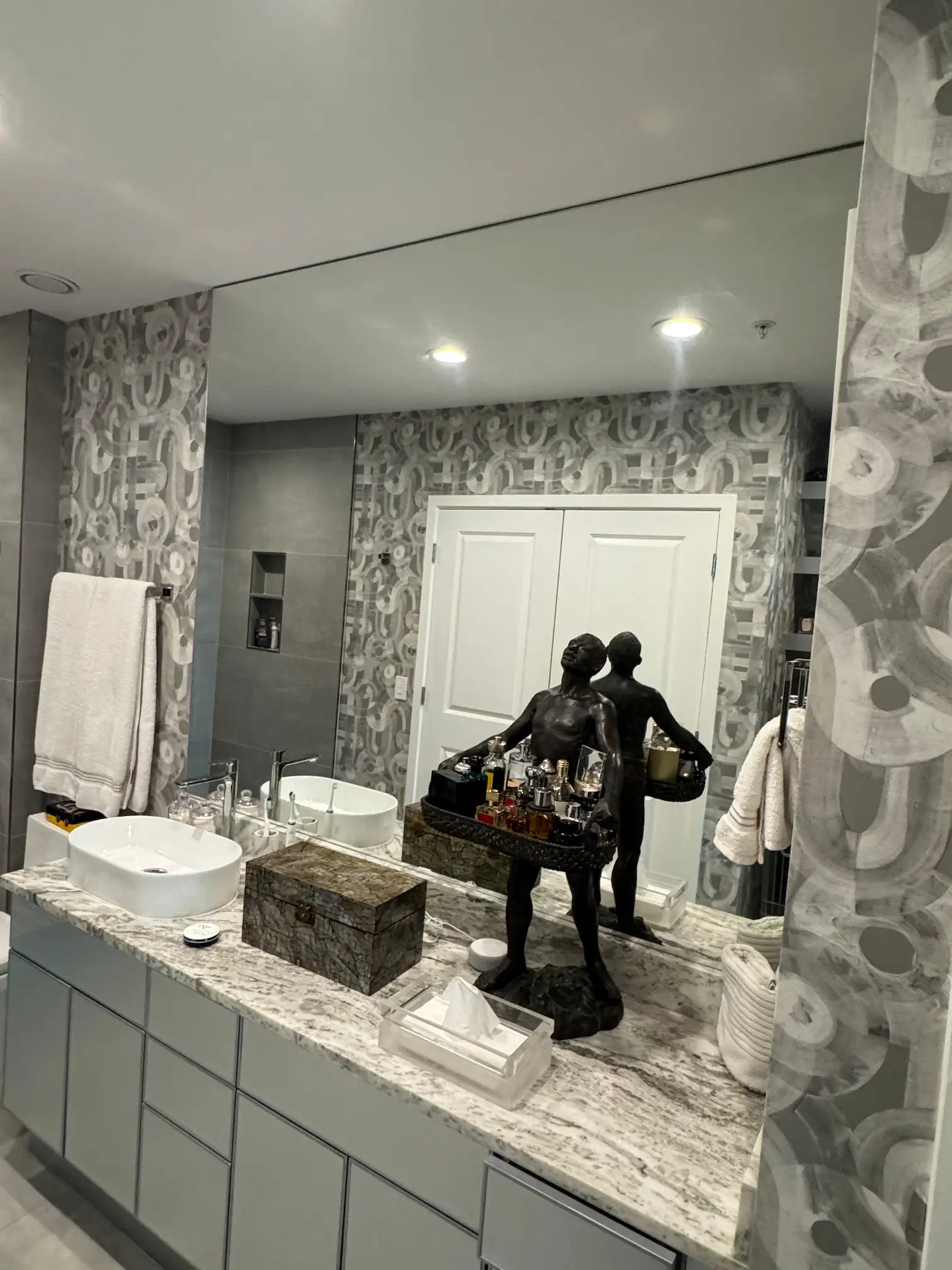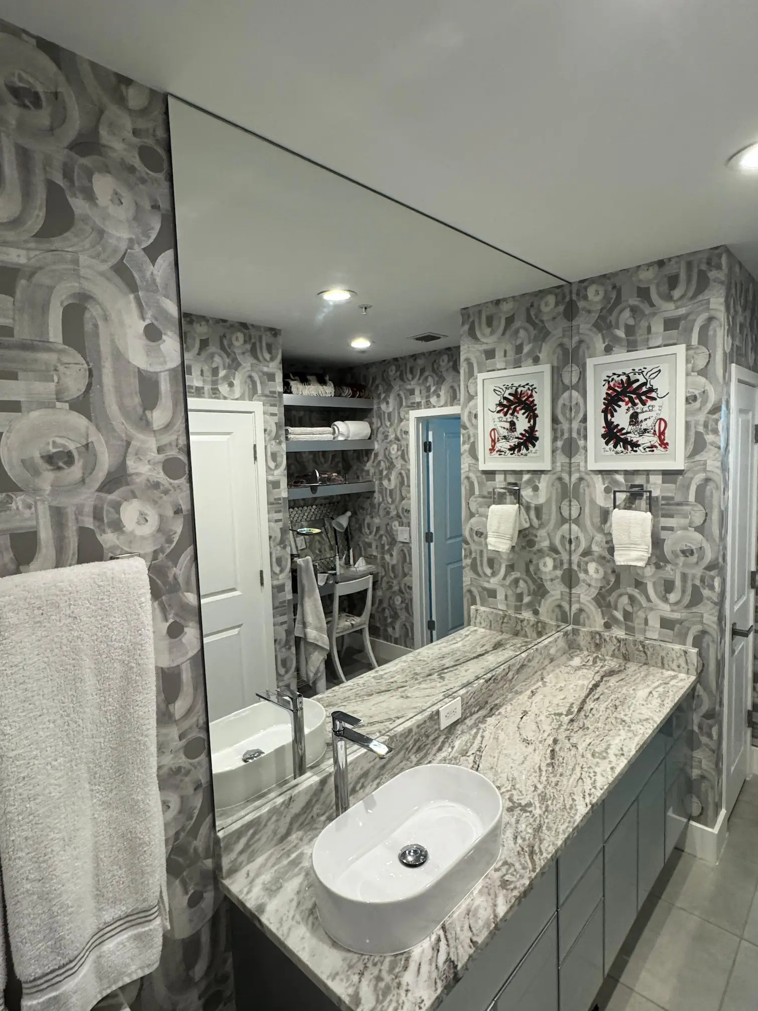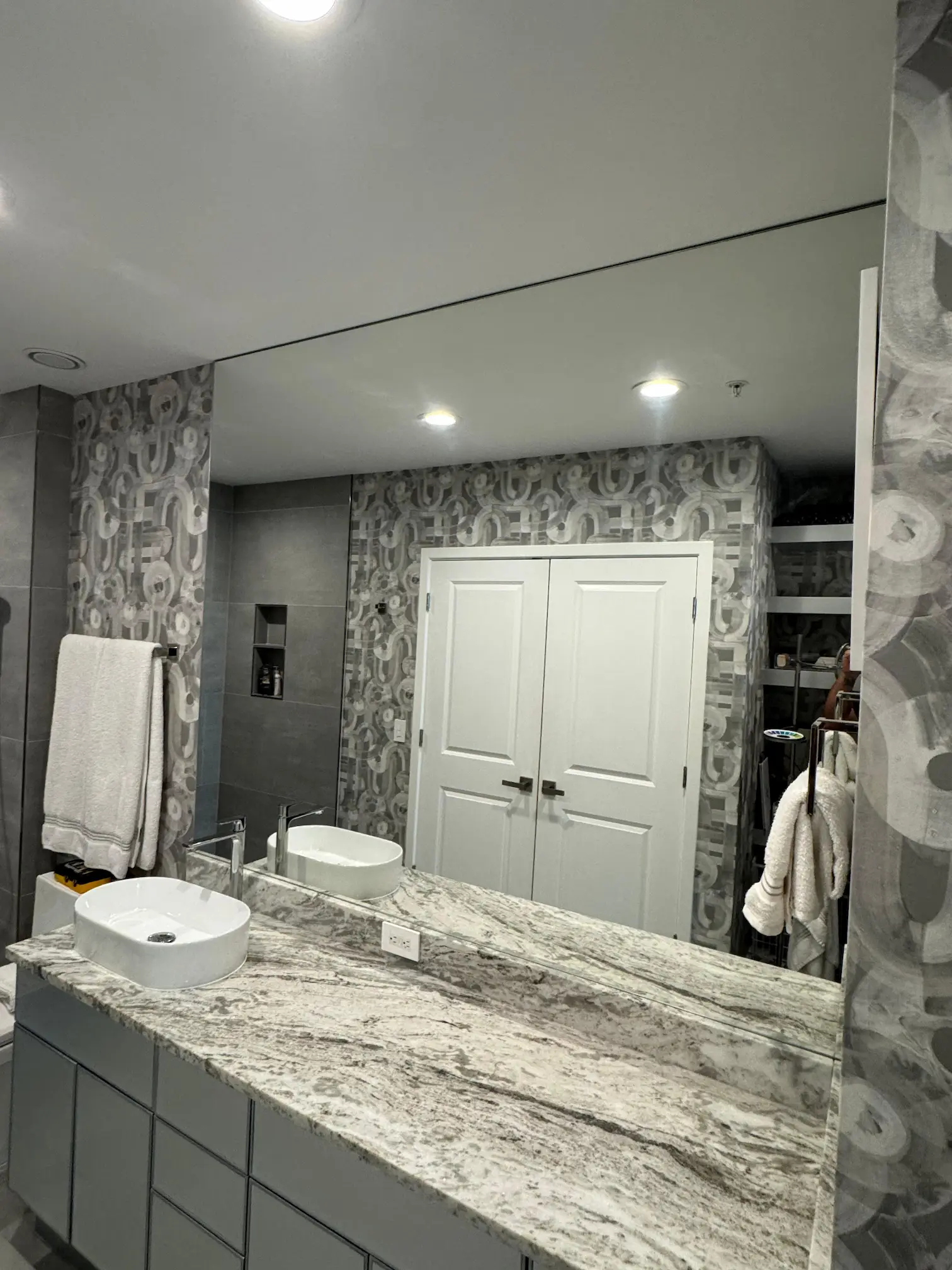 This project in West Palm Beach, FL, featured the fabrication and installation of a sleek shower enclosure paired with a large custom mirror, creating a refined and cohesive bathroom upgrade. The frameless shower enclosure was designed with 3/8” clear monolithic tempered glass and finished with polished chrome hardware, adding both durability and a modern touch. Complementing the enclosure, a ¼” clear 1st grade mirror was precisely cut and installed, enhancing the sense of space and light within the room. Together, these elements deliver a clean, contemporary aesthetic while maintaining functionality and elegance.