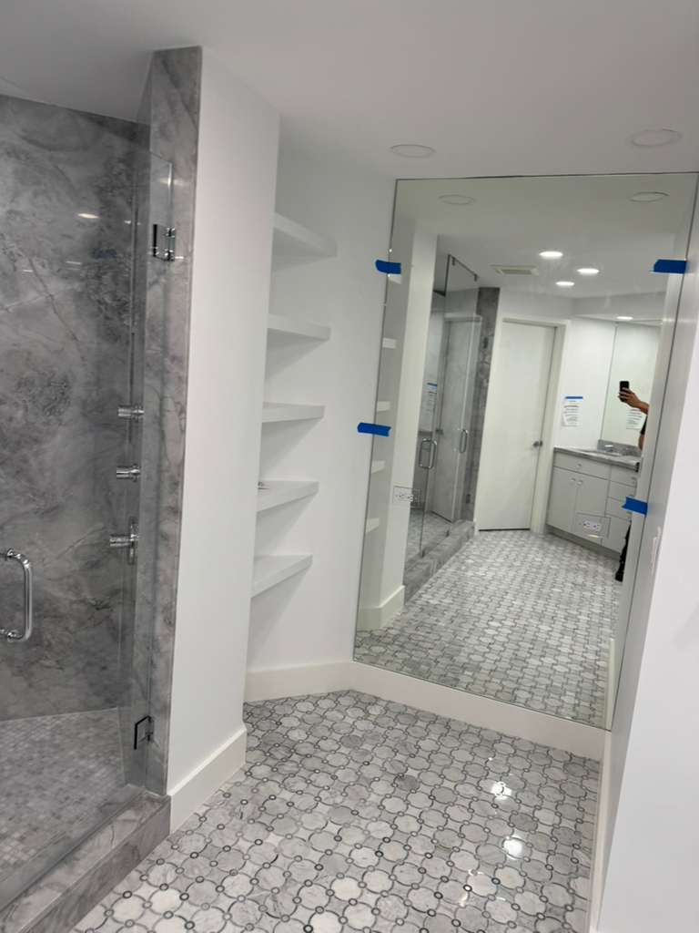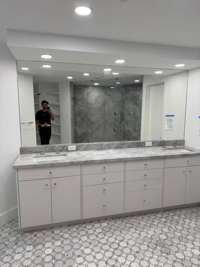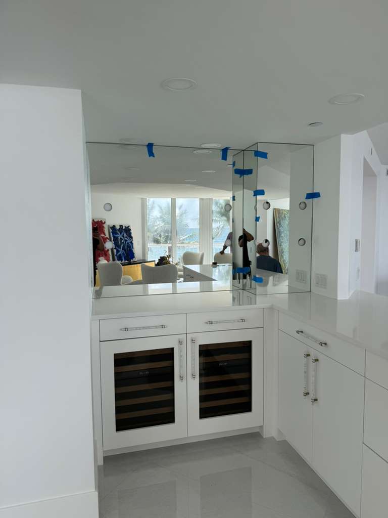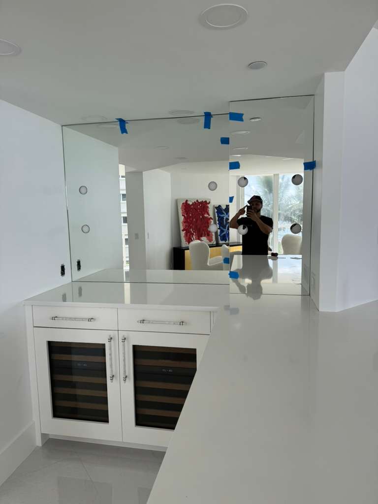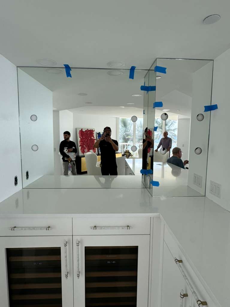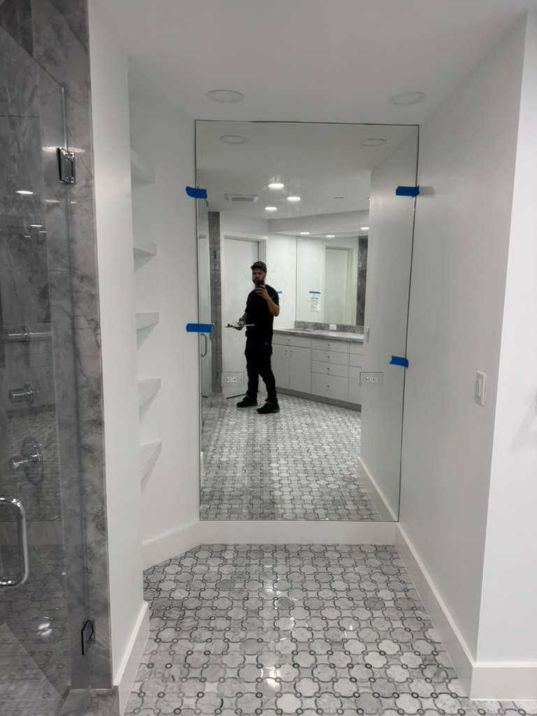 This project in Palm Beach, FL, involved the installation of premium ¼” clear first-grade mirrors designed to bring clarity, brightness, and refined elegance to the space. Each mirror was installed directly onto the walls using industry-standard adhesives and sealants to ensure long-term stability and protection against edge deterioration. The result is a clean, seamless finish that enhances both the functionality and visual appeal of the rooms.