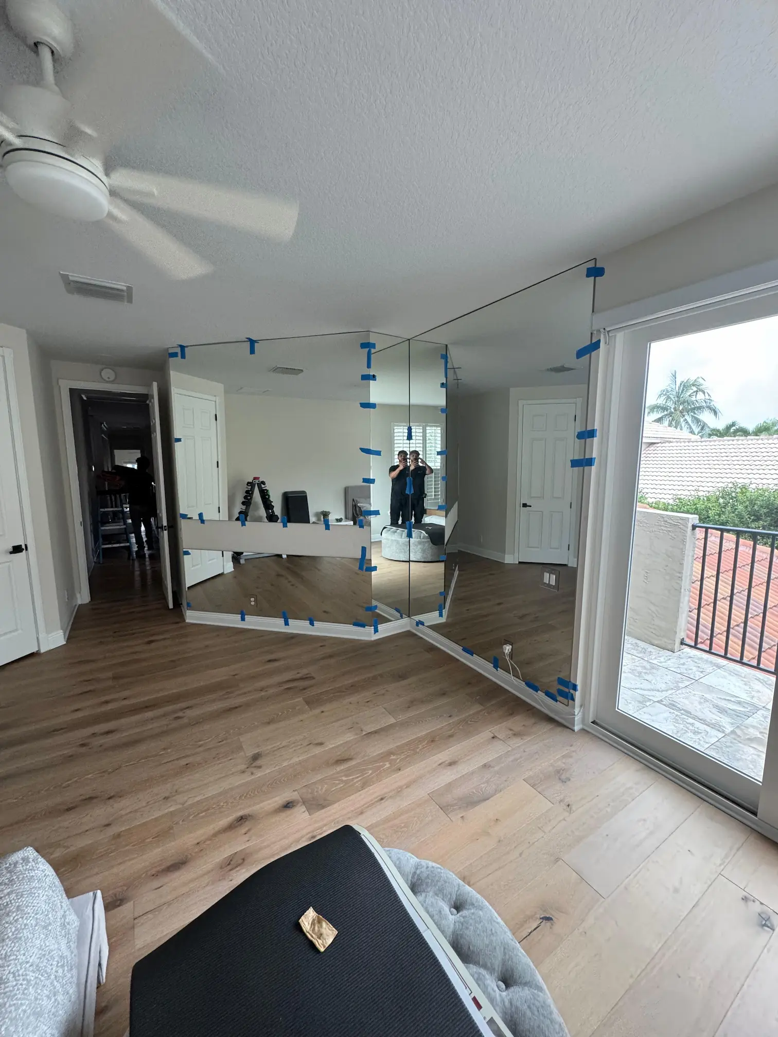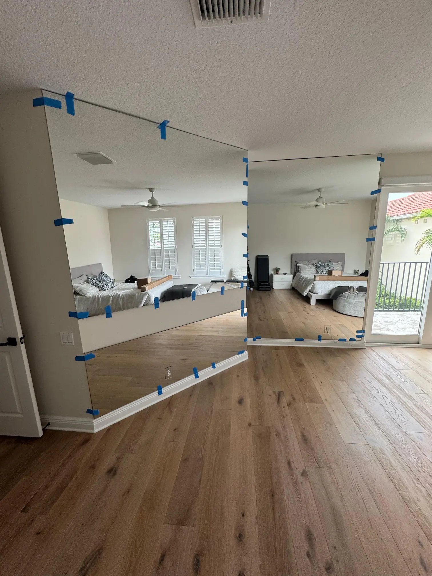 This project in West Palm Beach, FL, involved the fabrication and installation of custom mirrors designed for seamless integration with the interior millwork. The scope included 1/8” clear mirror inserts for cabinetry and a 1/4” clear mirror glued to the wall and resting on the baseboard, finished with matching outlet covers for a clean, cohesive appearance. All final measurements were carefully verified on-site to ensure precise fit and a flawless installation that elevates the room’s functionality and finish.