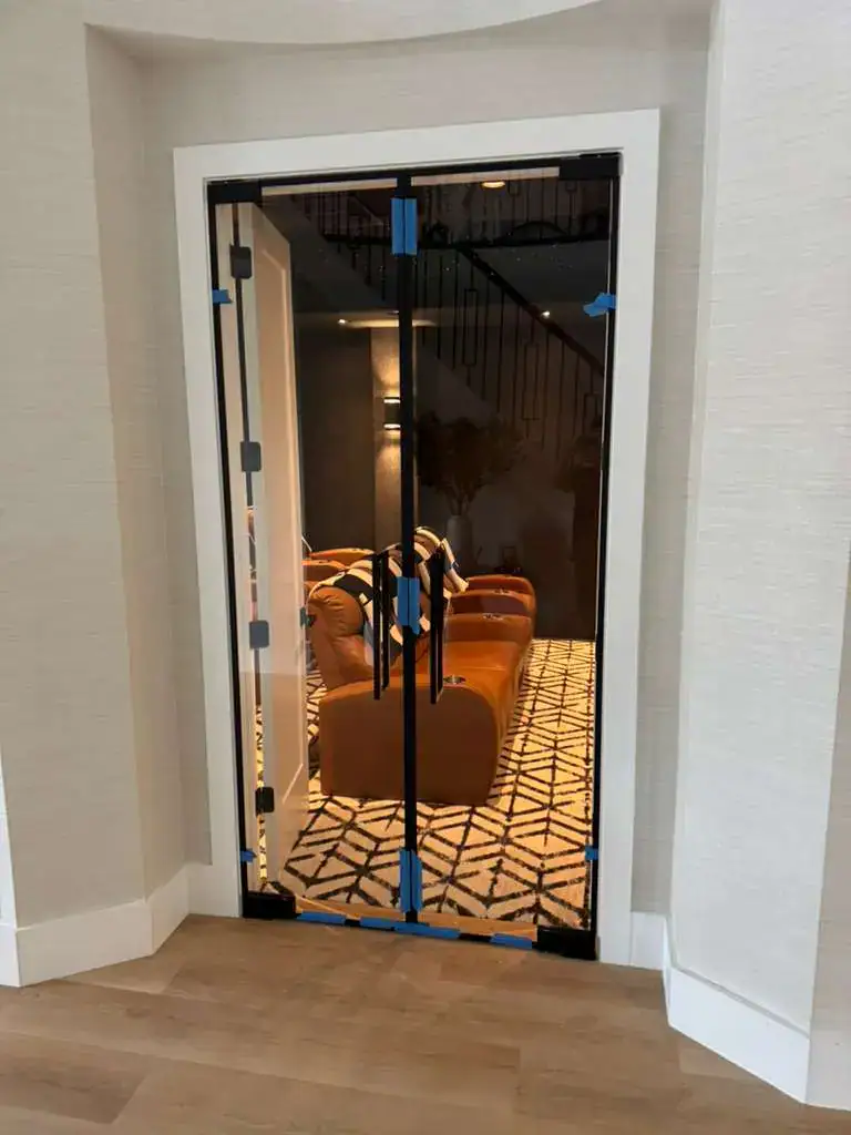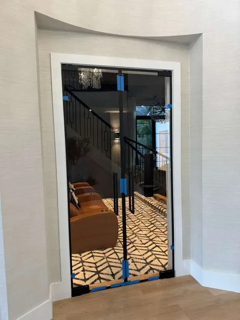 This project in Delray Beach, FL, involved the fabrication and installation of a custom interior glass partition designed to create a defined space while maintaining openness and light flow. Constructed with clear monolithic tempered glass and paired with matte black hardware, the partition features a 3/4-inch U-channel frame around the perimeter of the doors for a clean, architectural finish. Commercial-grade hydraulic soft-closure hinges with a 90-degree hold-open function were used to ensure smooth operation and long-term durability, resulting in a refined and modern interior solution.