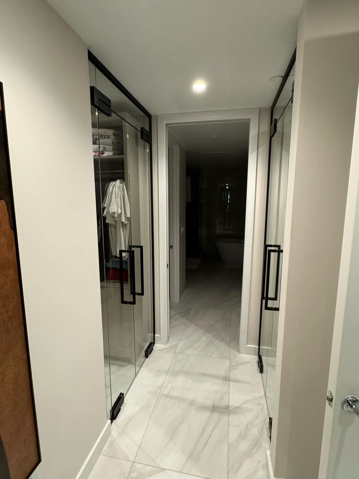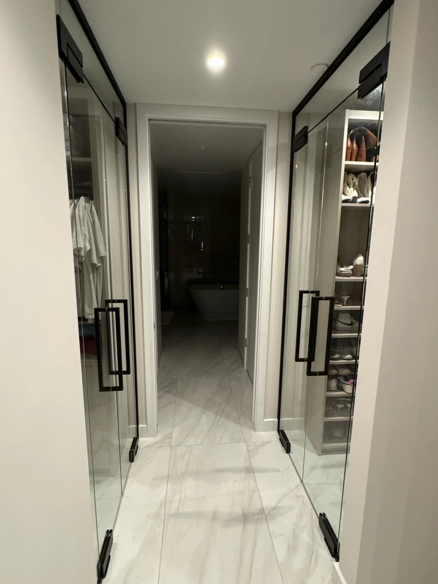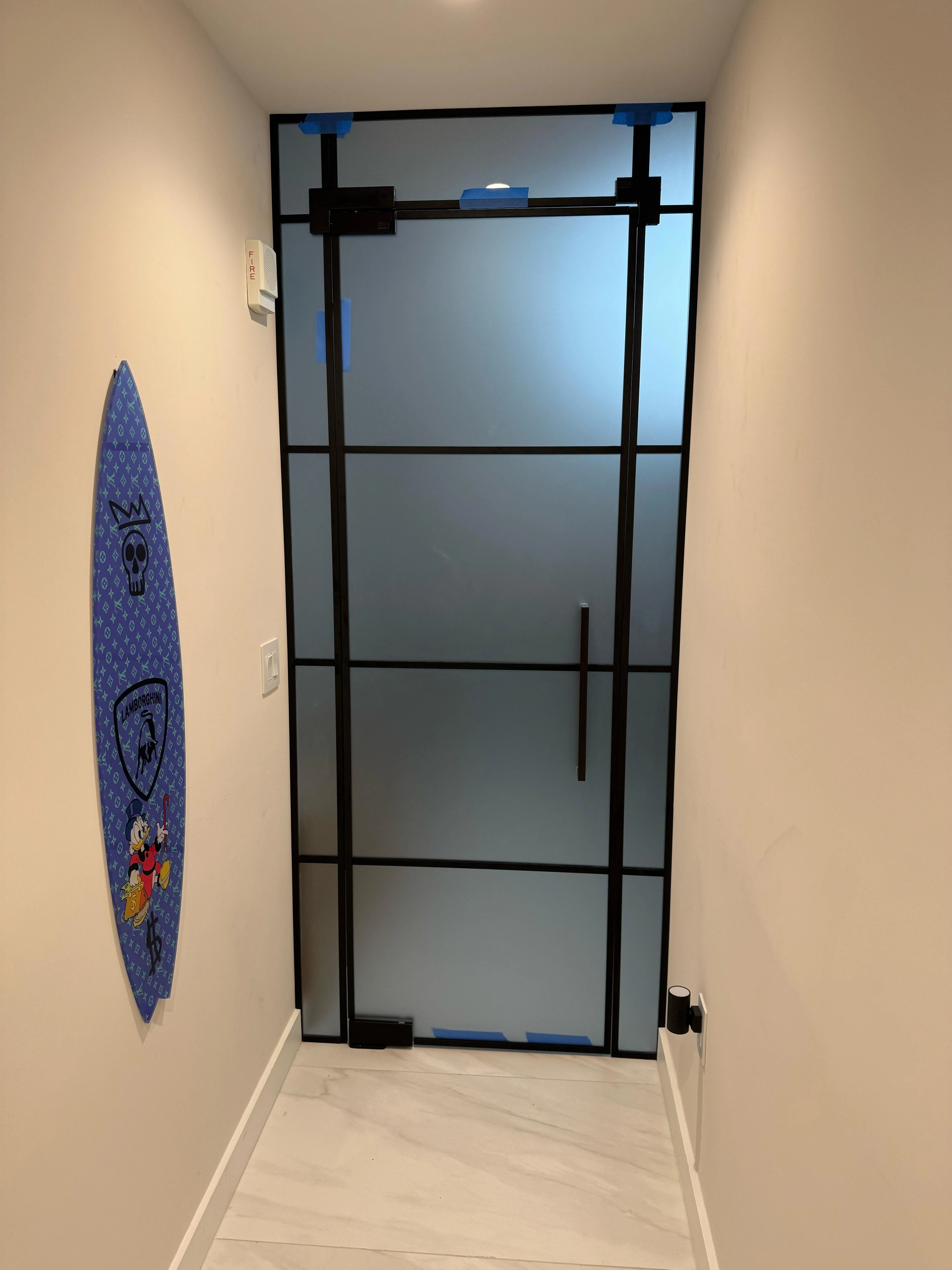 This project transforms multiple interior spaces in a Boca Raton residence using clear and acid‑etched glass partitions, outfitted with sleek hardware and decorative grids. From a shoe closet to bedrooms and a shower panel, each installation balances transparency, privacy, and modern style.
