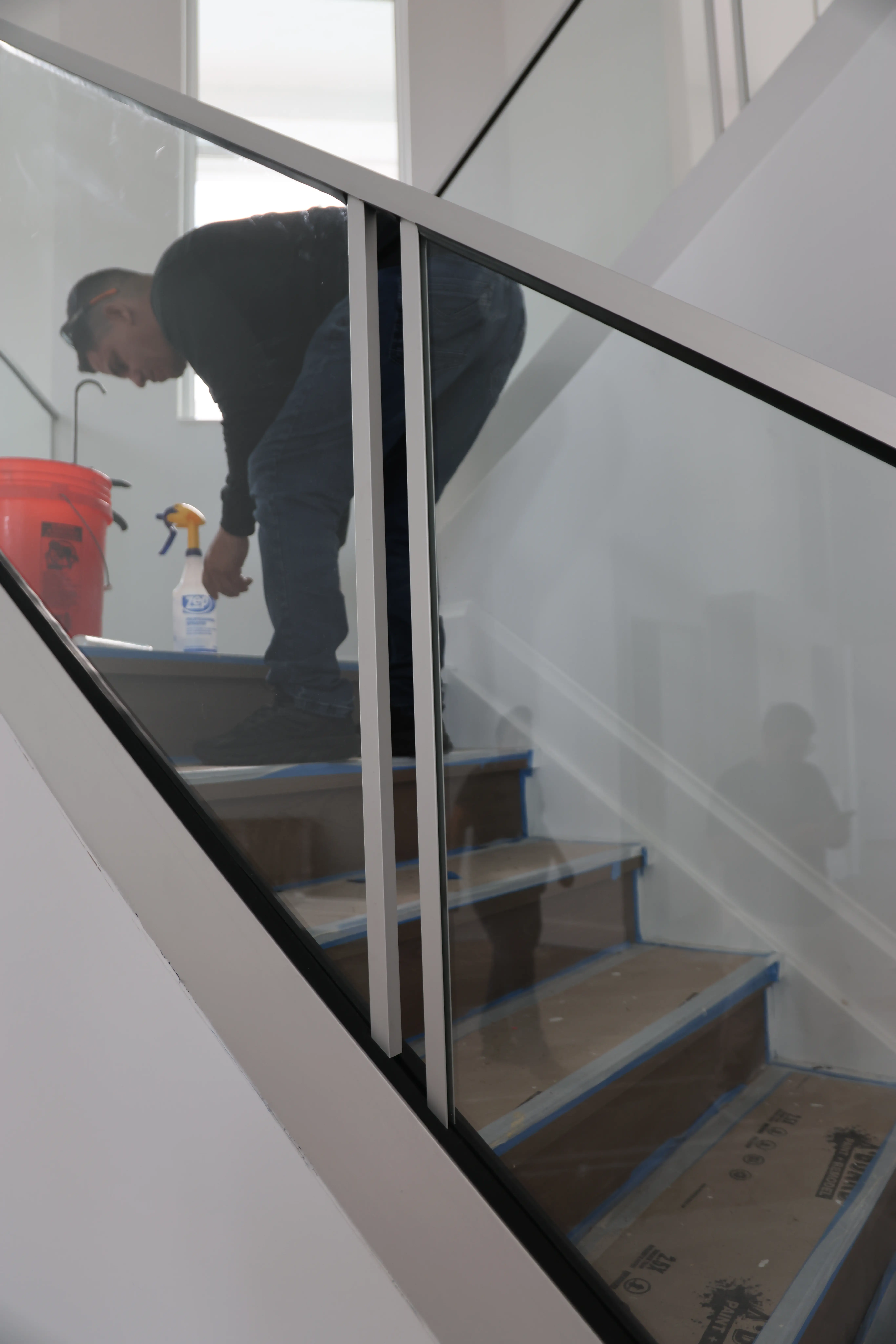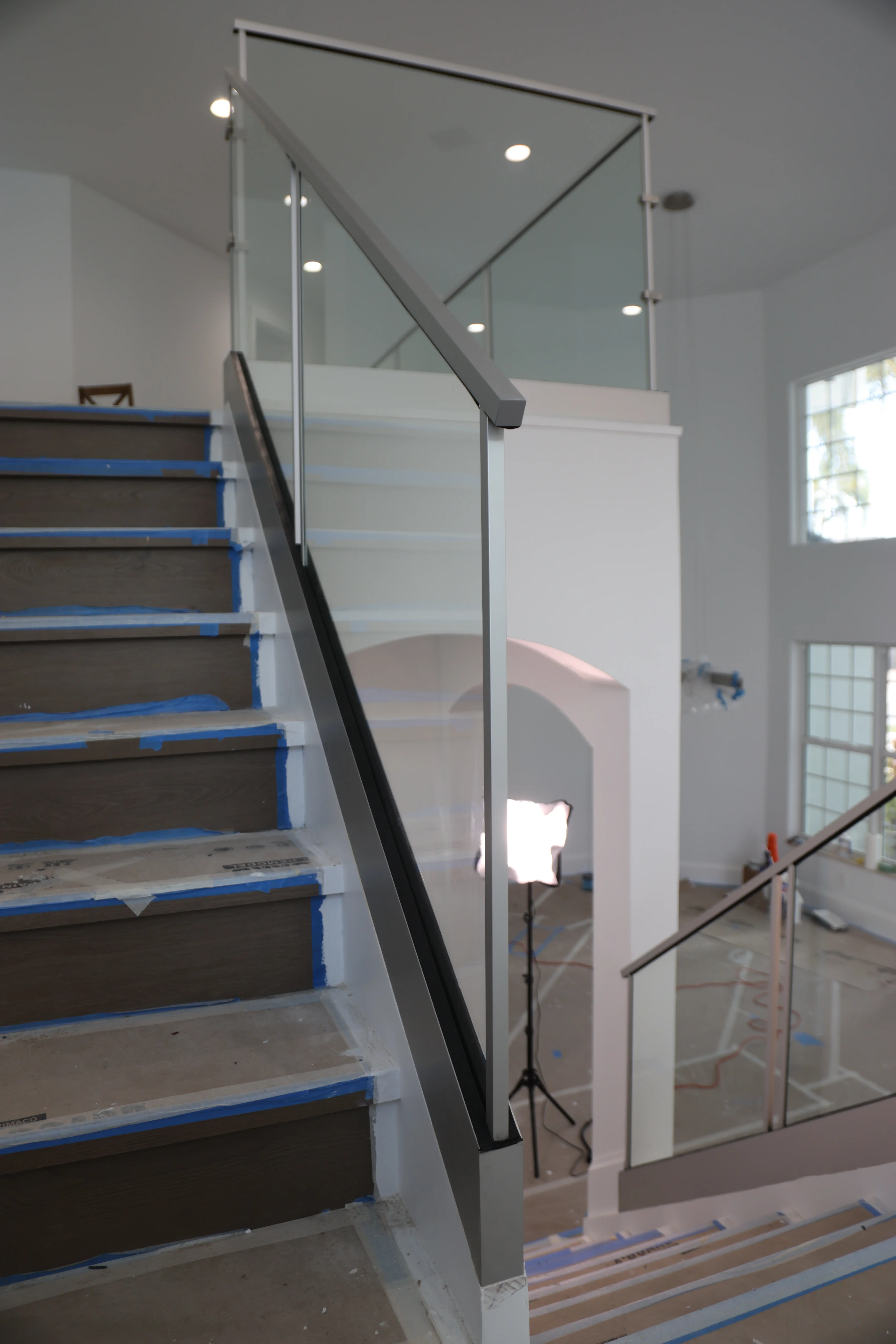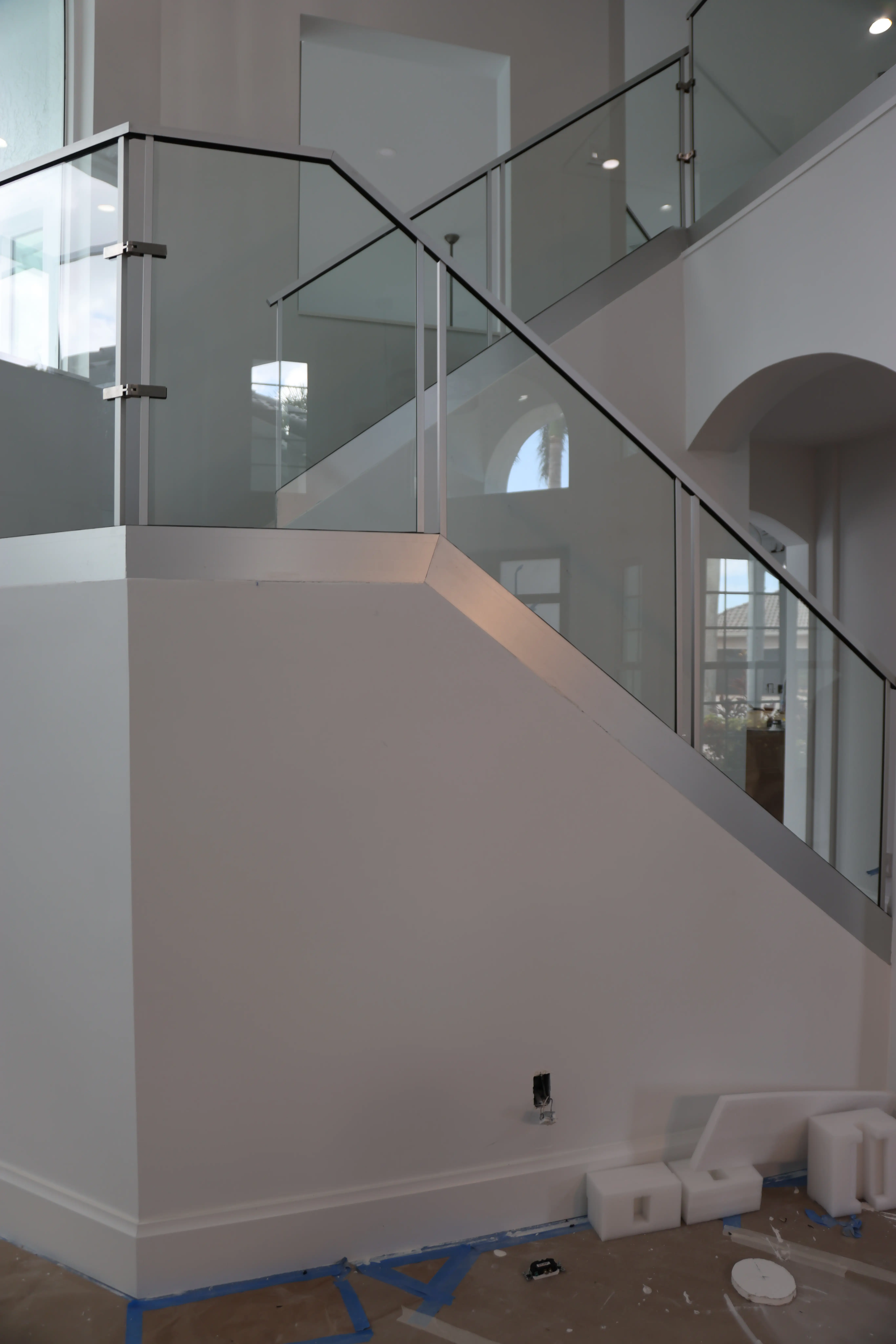 This project showcases the installation of custom glass railings, designed to combine safety with modern elegance. The system features 1/2” clear monolithic tempered glass, providing both strength and a sleek, transparent look. A base shoe system with satin anodized hardware secures the glass, while a low-profile cap rail adds a refined finish.