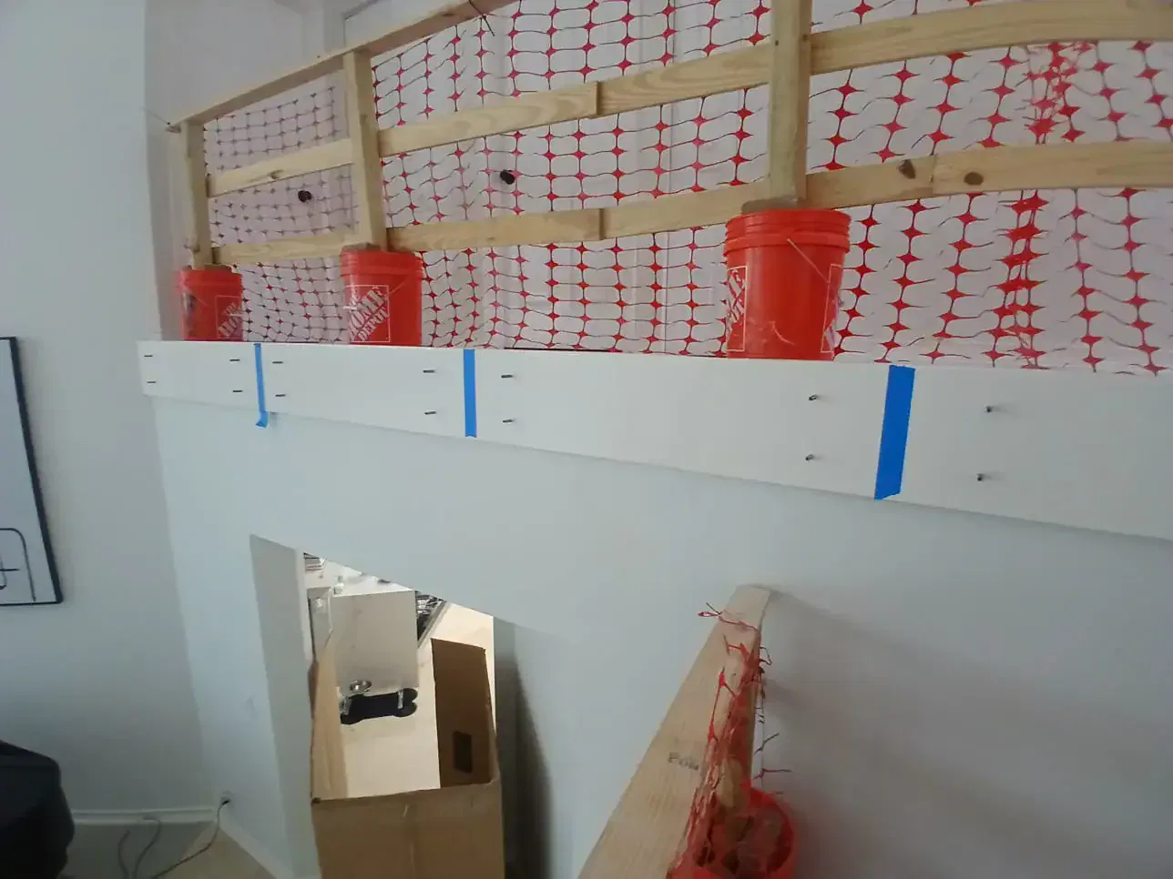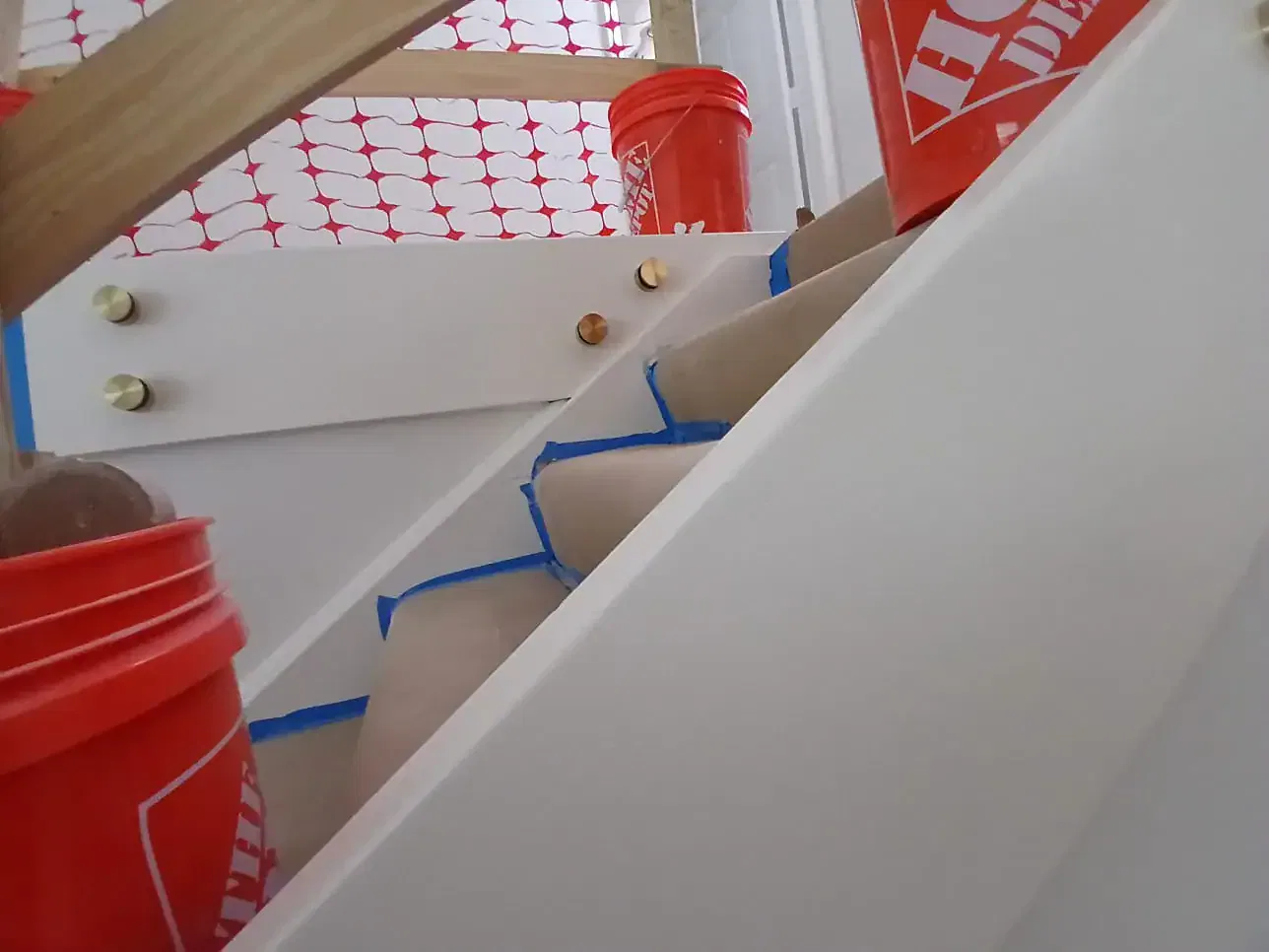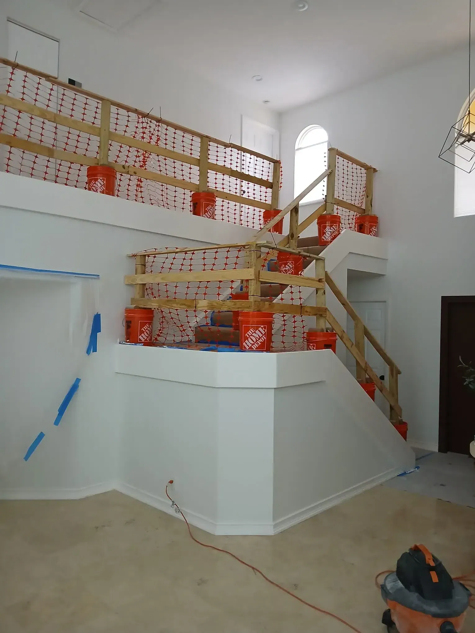 Modern staircase construction with glass and mirror accents for elegant home design.