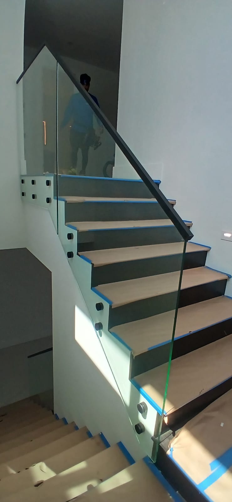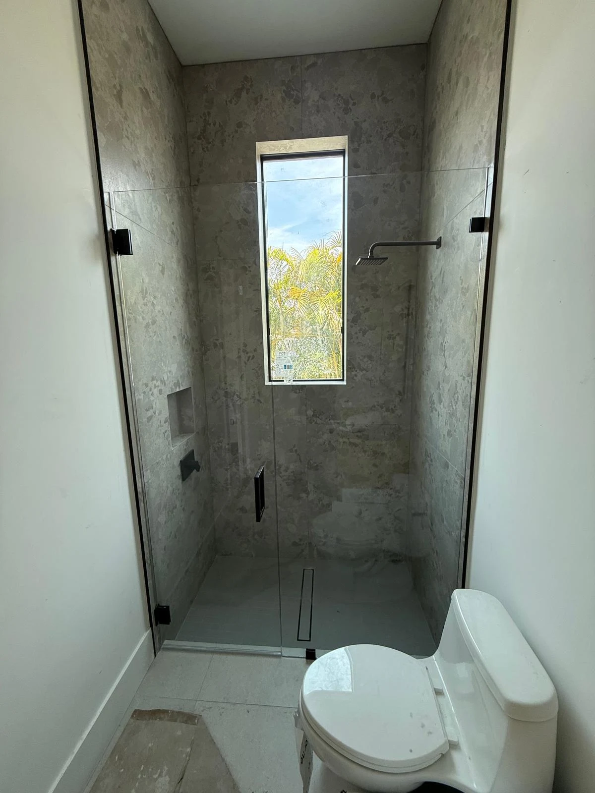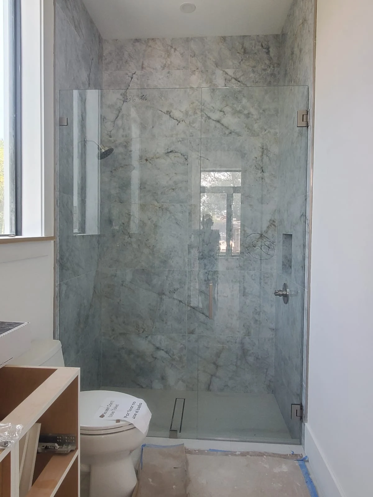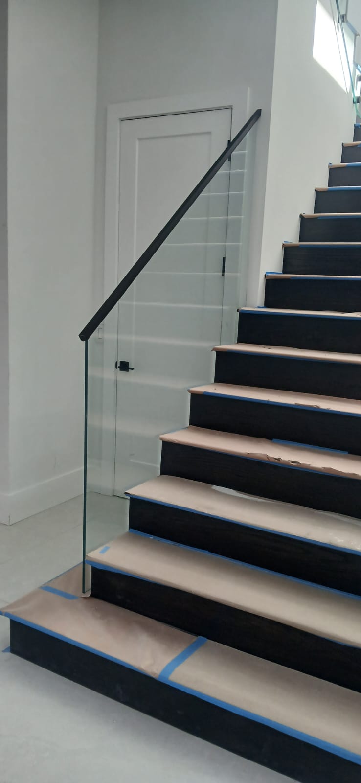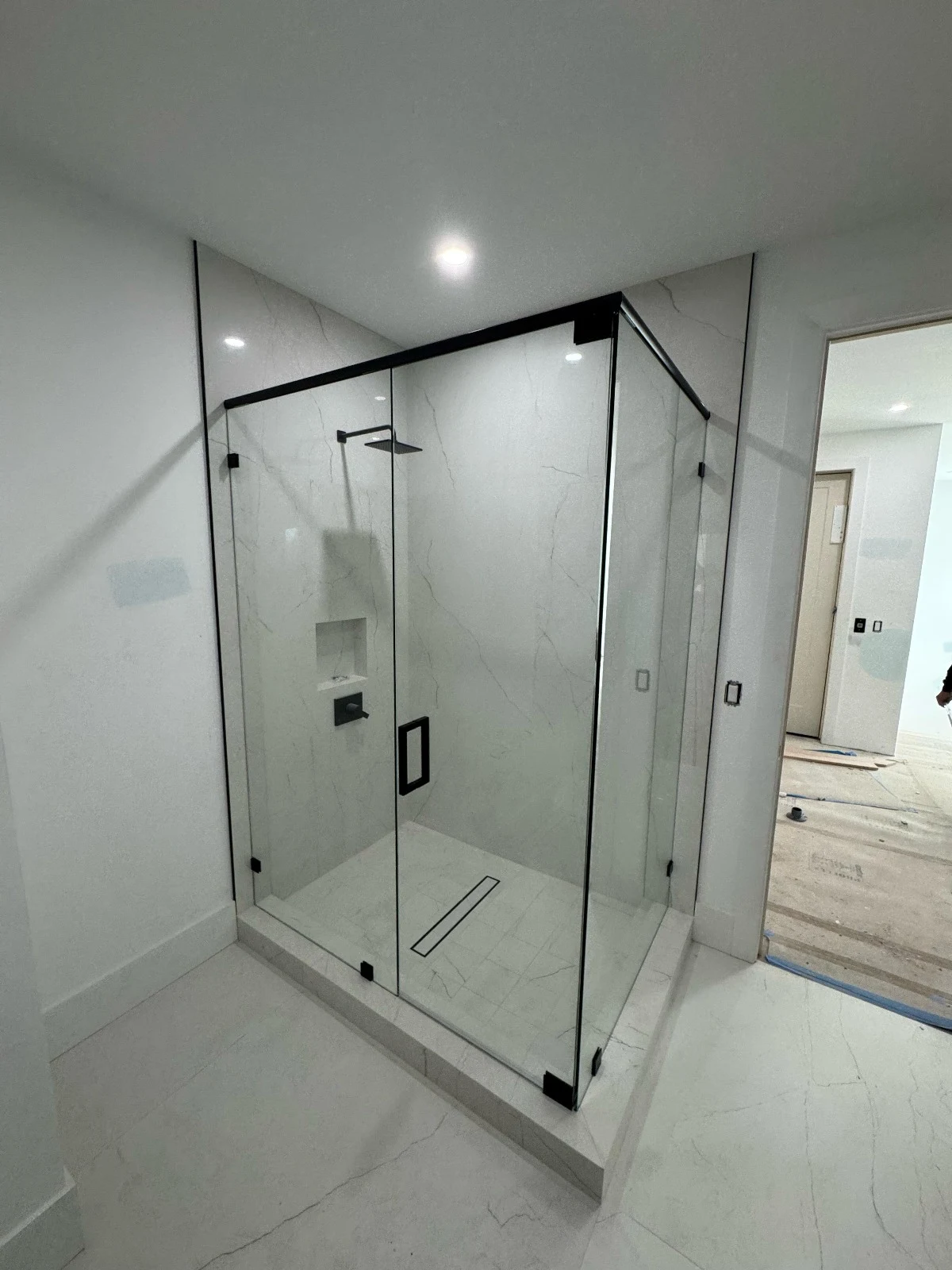 We are currently working on a full custom glass installation for a luxury residence in West Palm Beach, FL. This ongoing project includes interior glass railings, several frameless shower enclosures, and a custom glass wine cellar door. Every element is designed to match the client's style with precision and elegance.
