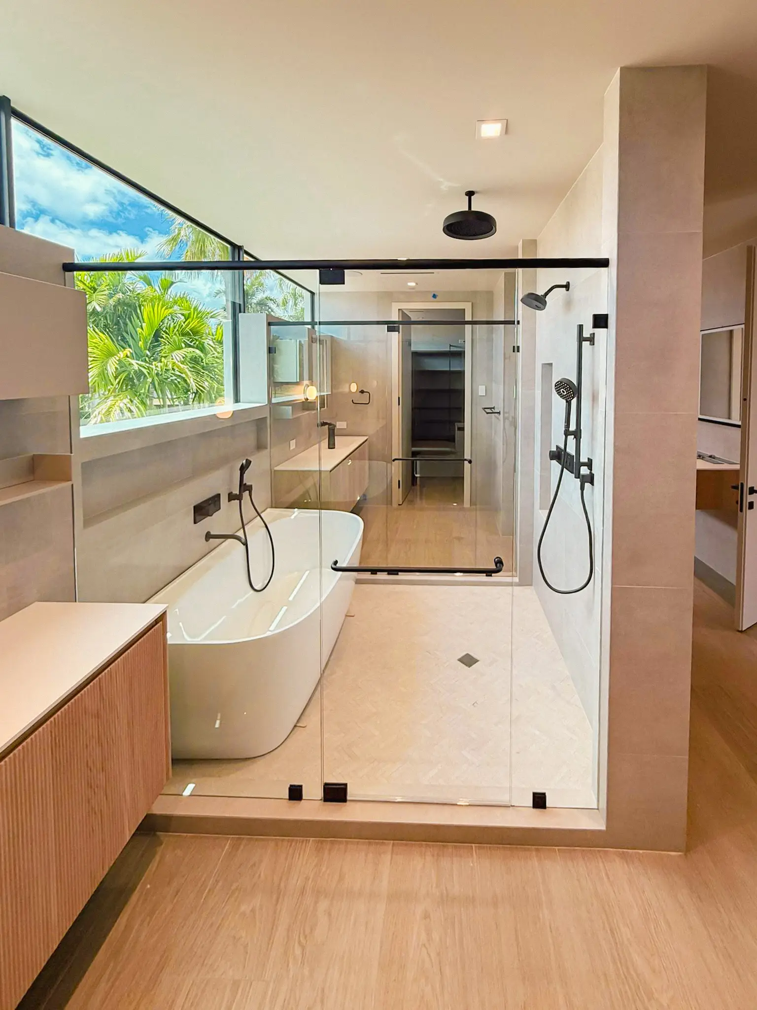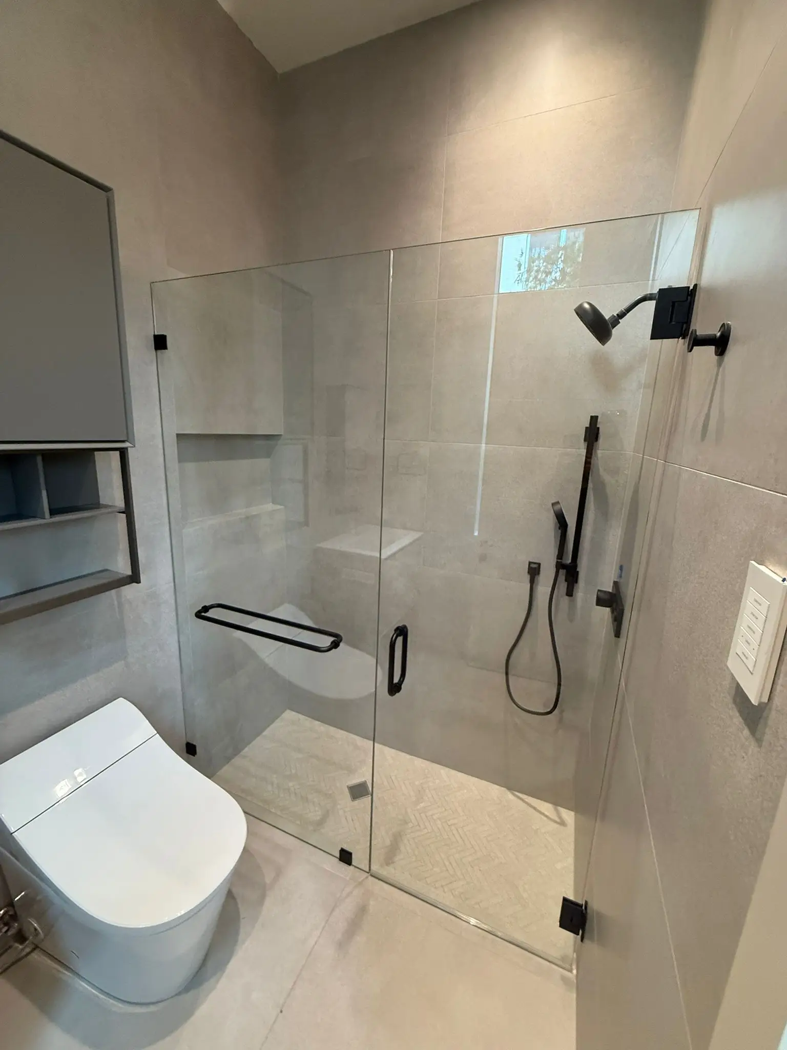 This project in Boca Raton, FL, included the fabrication and installation of multiple custom frameless shower enclosures across several bathrooms and a loft. Each enclosure was built from 3/8” clear monolithic tempered glass treated with EnduroShield for long-lasting protection and easy maintenance.