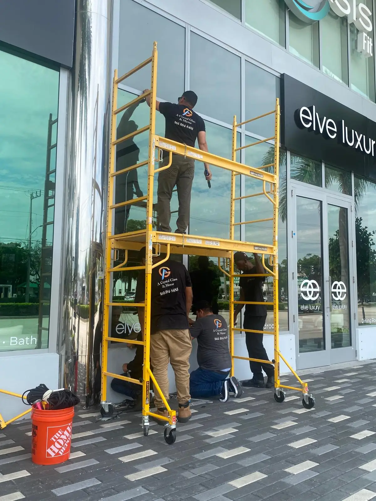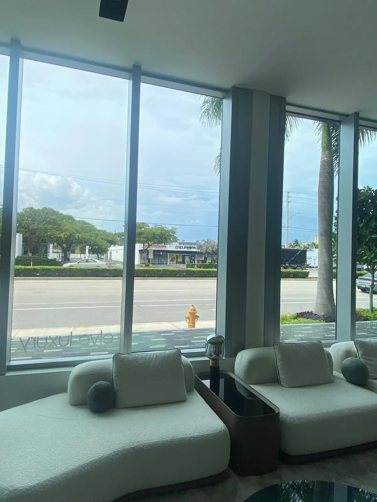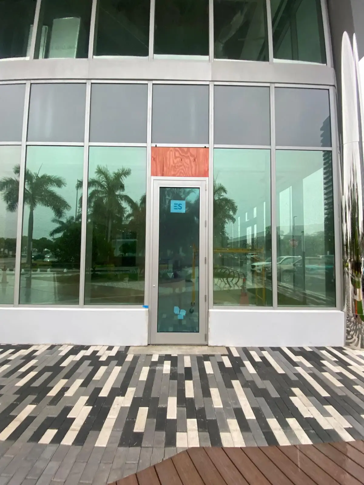 This project in Hallandale Beach, FL, involved the fabrication and installation of a high-performance exterior storefront and door system. The design incorporates 9/16” Clear Solarban 70XL Laminated Impact Glass, set within AAMA 2605 gray-finished ES Windows 8000 and 9000 Series storefront frames. Existing storefront glass in the spandrel area was carefully removed, and a new storefront door with transom was installed, ensuring precise alignment and a seamless finish. The result is a durable, visually striking storefront that combines safety, energy efficiency, and modern aesthetic appeal.