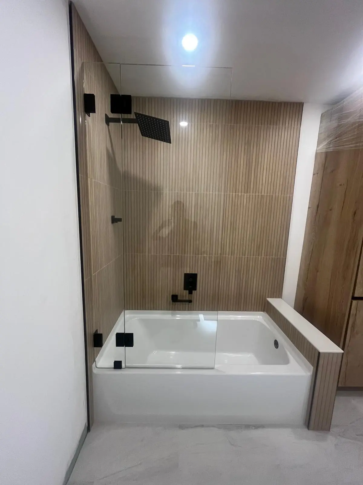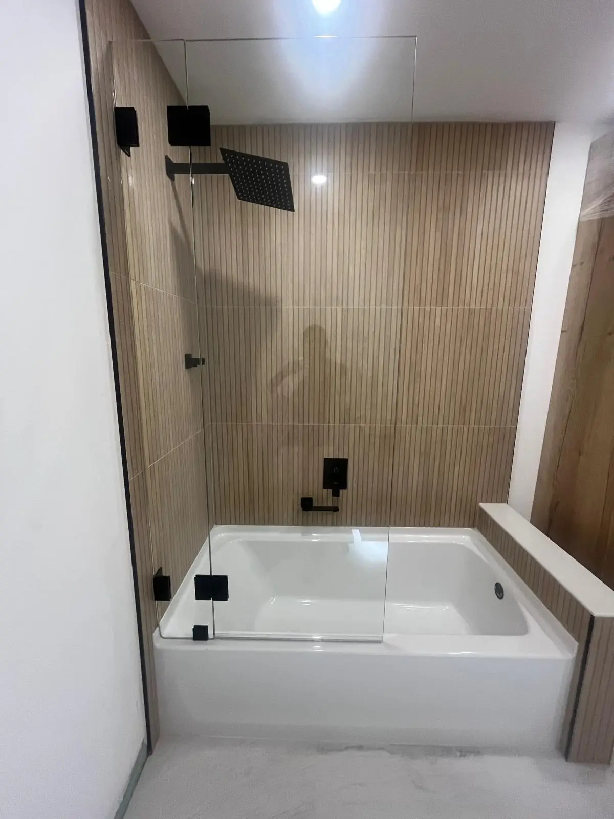 This project in West Palm Beach, FL, involved the precise fabrication and installation of a sleek custom shower enclosure designed to elevate the bathroom’s modern appeal. Crafted from 3/8” clear monolithic tempered glass and complemented by elegant matte black hardware, this frameless enclosure delivers a clean, contemporary look.