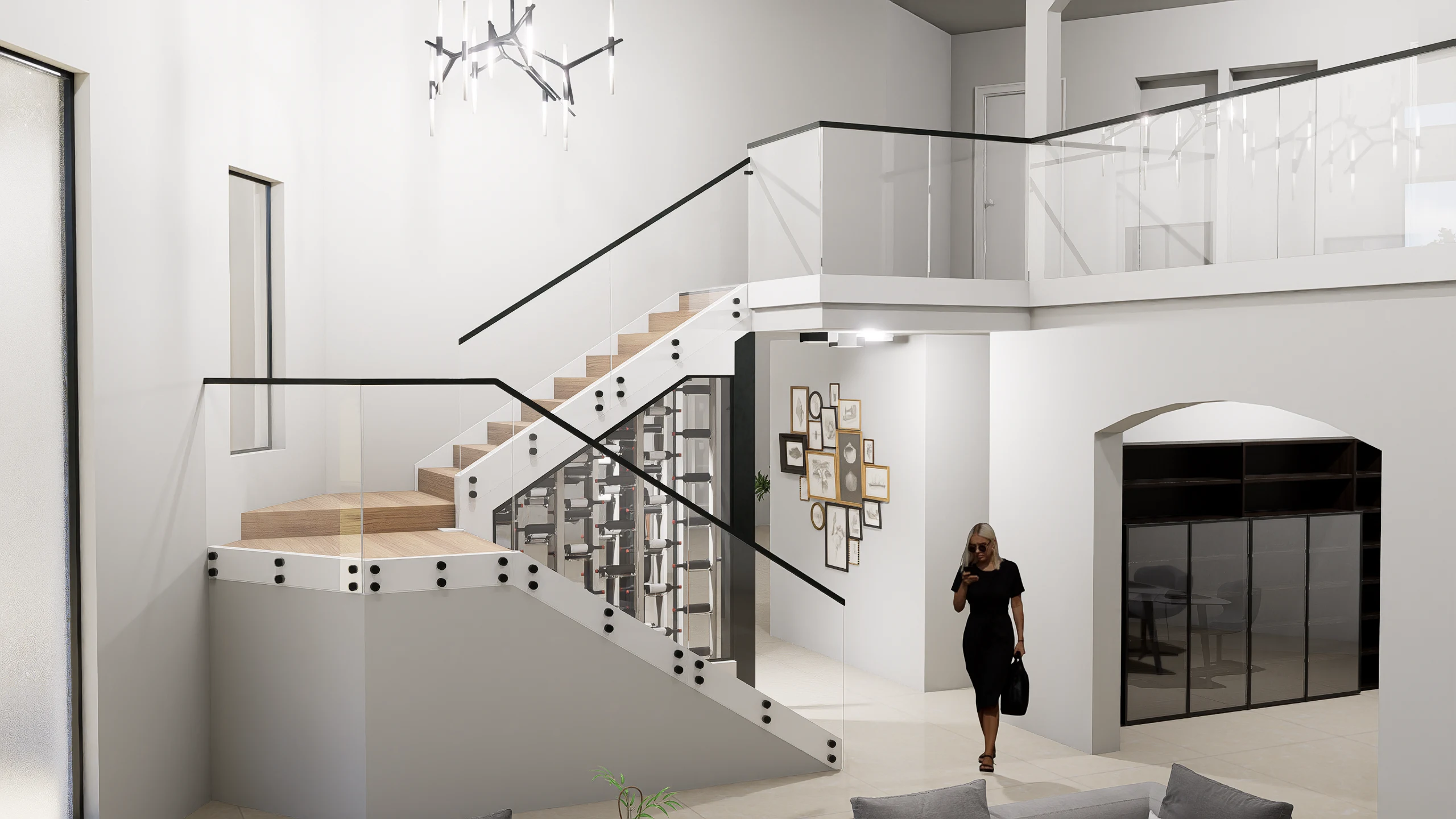 Glass Railing, Wine Cellar and Mirror | Audubon Trce Residence